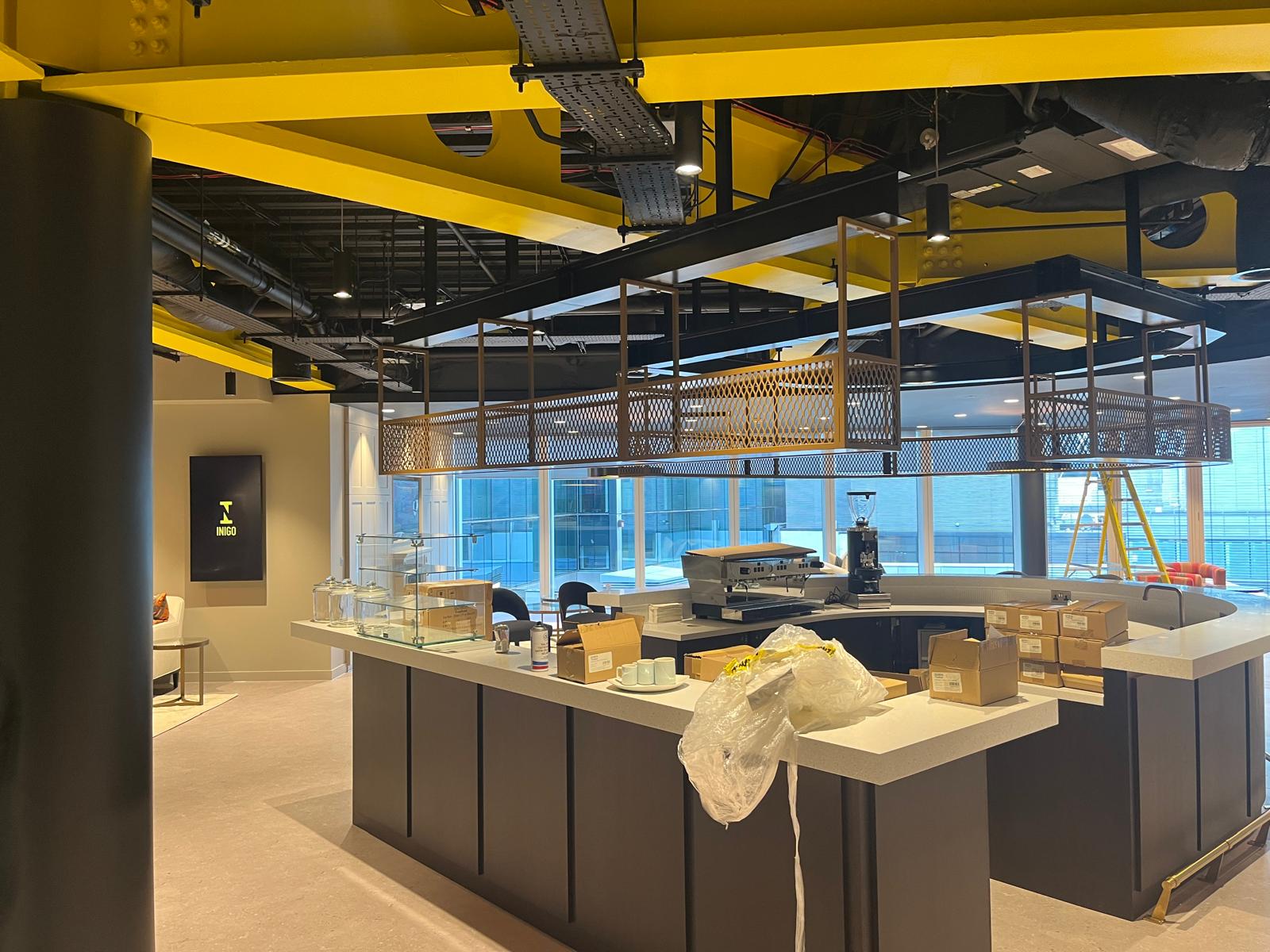 All components were fabricated off-site to ensure precision, with a powder-coated finish applied to provide durability and a high-quality appearance suitable for a commercial environment.