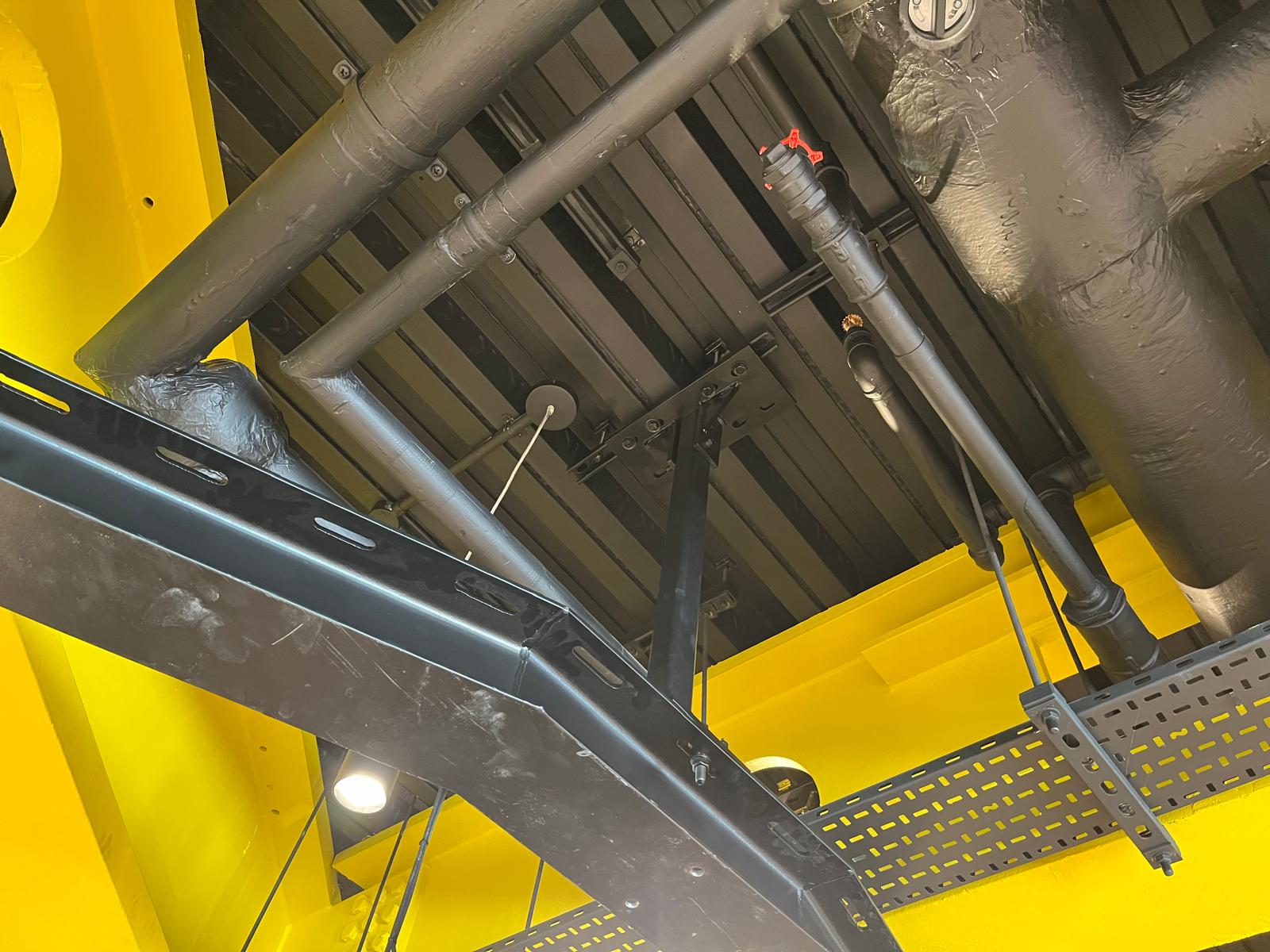 The curved and rectangular shelving frames were carefully designed to meet the precise spatial constraints of the site. Expanded mesh panels were incorporated into the frame assemblies according to client specifications, providing both functional support and a visually striking finish.